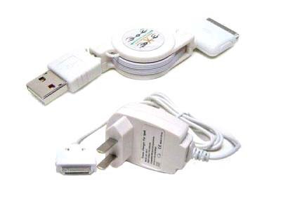 For iPod Wall/Travel/Home Charge Quantity: 1 Need to charge your iPod at work or when going out of town? Don't even bother to unplug the original one from home. Simply carry an extra handy and light travel charger and you can charge yours anytime, anywhere! Intelligent IC chip inside recognizes a fully charged battery and automatically switches to a saver mode to prevent overcharging and short circuit. LED charging indication. Best replacement for the original iPod Home/Travel Charger. For use with: Apple Compatible with: iPod with dock connector only including iPod 3G, 4G, 5G (with video), iPod mini, iPod nano For USBHotsync Cabler 100% new high quality INSTEN - Retractable USB Hotsync Cable Quantity: 1 Update your iPod at high speed with the latest music and data. The iPod Dock Connector to USB Retractable Cable offers 400mbs throughput for quick transfer of your music and data to iPod. The innovative retractable design cuts down on travel bulk and ensures the portability of your MP3 player without sacrificing functionality. No more tangled cable mess. Brand: Insten Color: White Length: 3.5 inch