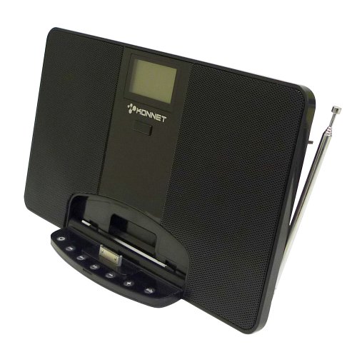 The perfect speaker system/alarm clock radio for iPhone and iPod users while on the road. There is nothing worse than being away from home and not having speakers for your iPhone or iPod. The Konnet Booming Lite is the perfect solution with it's robust sound and super slim design. The Konnet Booming Lite runs on six AAA batteries or can be plugged in via the included power adapter. A perfect solution for all situations. Never be caught without your Music on the Go!